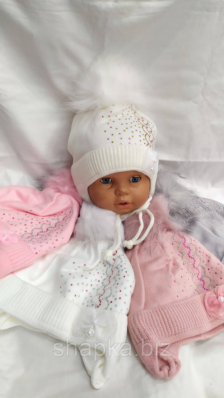 Дитяча зимова шапочка для дівчинки на флісі до двох років, в асортименті.