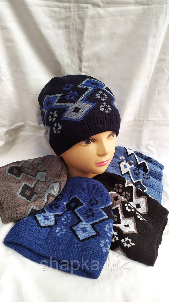 Підліткова в'язана шапочка на флісі для хлопчиків до 14ти років, в асортименті.